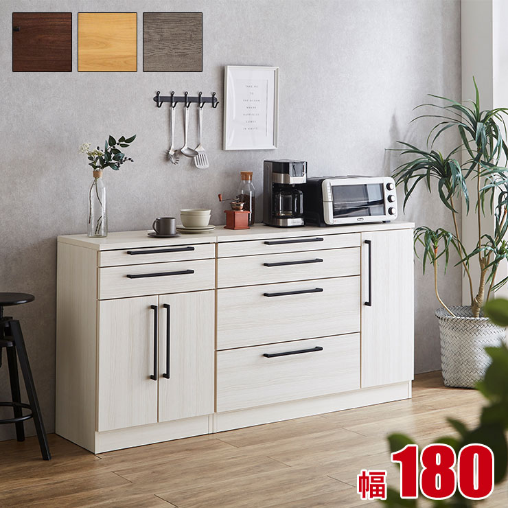 ロータイプ 食器棚 レンジ台 ソリット 2点セット(60カウンター扉 120カウンター扉) ホワイト ブラウン ナチュラル グレー 木目 レンジラック 完成品 大川家具