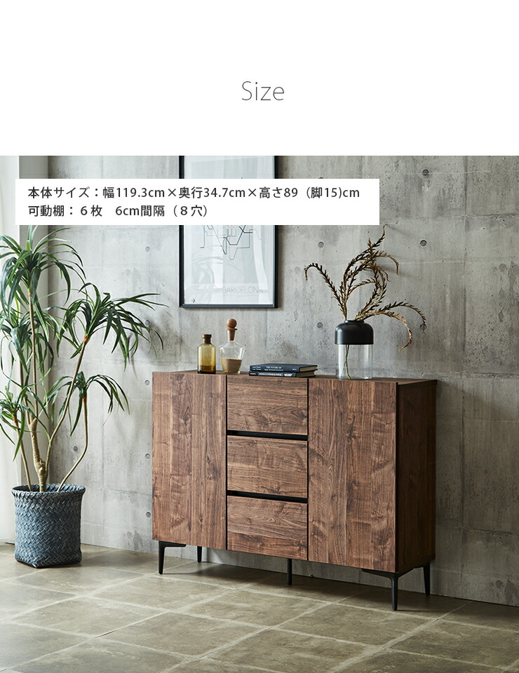 幅119.3×奥行34.7×高さ89cm※脚の高さ:15cm