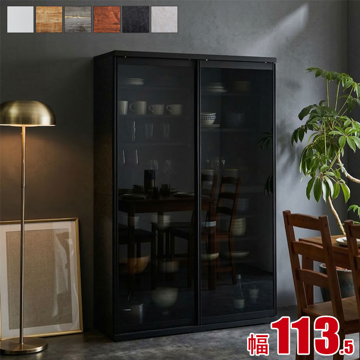 ■商品名:引き戸食器棚 ポエム3 幅113.5 ホワイト レディオーク ブルックリン ウォールナット ストーンブラック ストーンホワイト