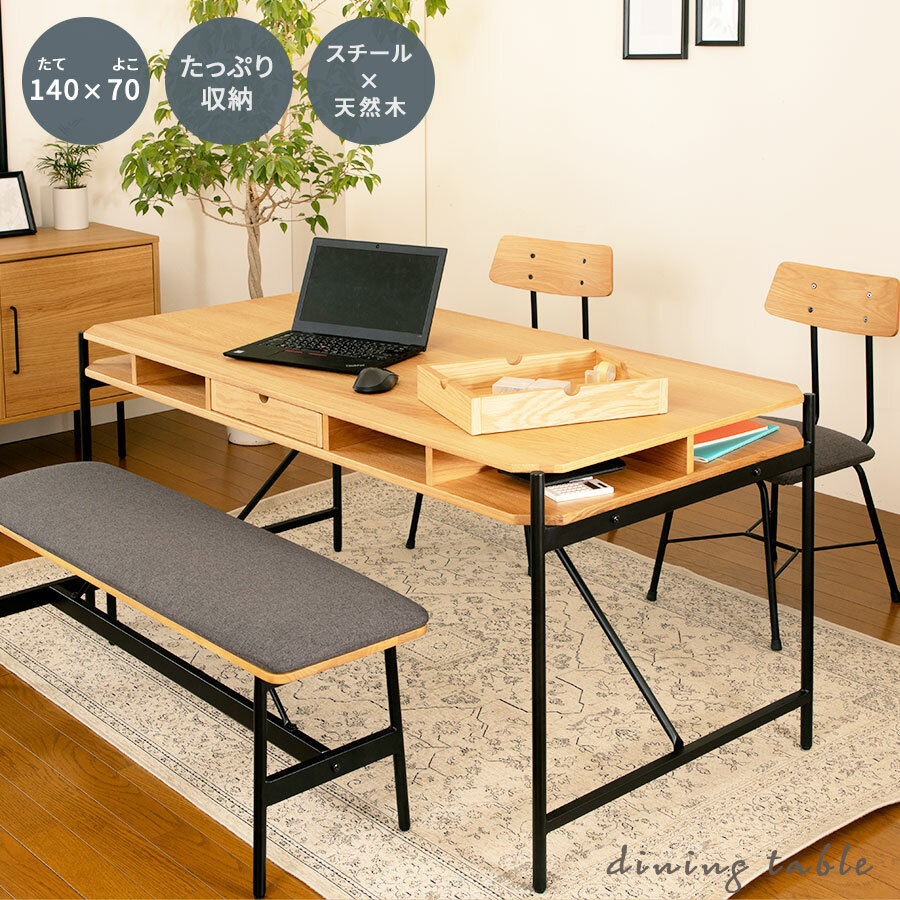 ダイニングテーブル 140×70 ダイニング 収納 カフェ風 おしゃれ 引き出し 長方形 幅140 リビングテーブル 4人 家具 テーブル インテリア シンプル