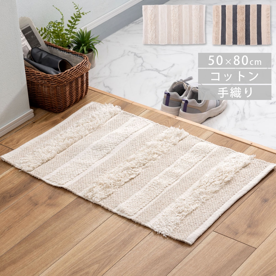 | ナチュラル コットン 手織り 手触り 風合い ストライプ 優しい 部屋 インテリア 玄関 マット ベッド サイド マット オススメ 部屋 アクセント コットン 優しい 柔らか |