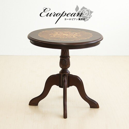 | 優美で洗練されたロココ調デザインが実に印象的。木彫りの美しさが更に際立つ落着いたブラウンカラー。アンティーク・レトロ調の味わい深い空間を演出します。天板に象嵌細工を施した、高級感のあるテーブルです。 | |||