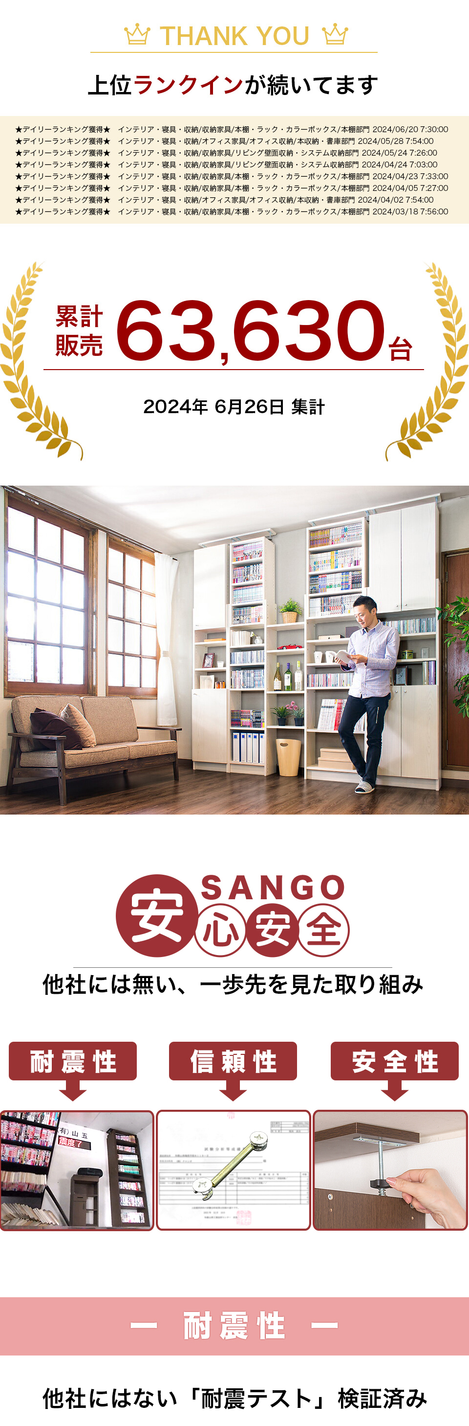 | お客様組み立て 本品は家具の転倒防止を保証するものではありません。地震の状況や商品の使用環境、設置方法等によりその強度が大きく変わるため、万一の災害や事故等が発生しても、一切の弁償や補償は出来兼ねますのでご了承下さい。 |