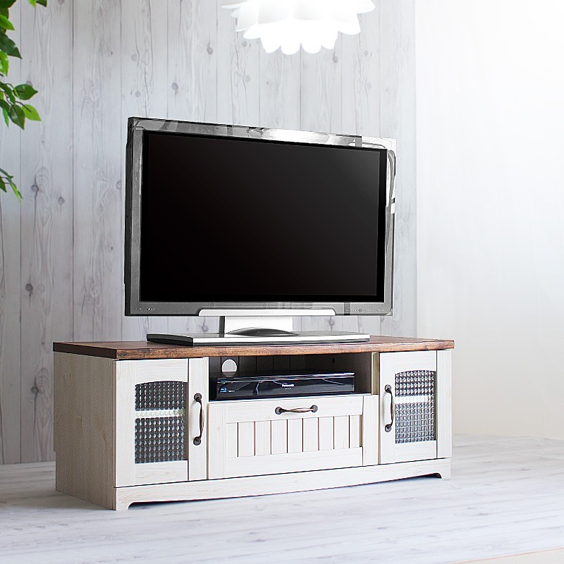 | Compact Nordic Country the small starage furniture will match your cozy rooms. TV Board 幅105cm コンパクトなワンルームならではの、すぐ手が届くこじんまりとした居心地の良さは他には代えがたいもの。そんな、おこもり感を大切にした省スペース設計です。 使い込んだ天然木のような風合いを再現した木目調の天板にあわせたホワイトオークの本体。 また、真鍮色の丸みのある取っ手がアクセントに。 あなたのお部屋を北欧のセンスで演出します。 見かけ以上の豊富な収納力 AVデッキはもちろんのこと、音楽CD、DVDなど快適なテレビライフを満喫するのに十分な収納力を確保しました。 左右のガラス扉の内部には、それぞれ棚板が1枚づつ付属しており、真ん中にセットした場合、上下合計で音楽CDが約38枚収納できます。 すなわち1台で、約76枚もの収納力です。 扉内部の棚板のピッチは約3.2cm間隔で3か所の移動が可能です。 インターネットのルーターの高さに合わせたり、DVDを収納したり、と用途に応じてお使い分けいただけます。 正面の引き出しには、DVDのタイトルを上にして、取り出しやすく、仕舞いやすい内寸設計のため、約32枚もの収納が可能になりました。 すき間なくピッタリ設置 配線の処理・余分な熱の放出に欠かせないコード通し穴。 左右のガラス扉、ならびにAVデッキ収納スペースの背面に設けていますので壁面にすき間なく、ぴったりと設置することができます。 また、天板にもコードを通せるようスリットを入れております。 さらに、幅木よけのカットも施しており、これでもうすっきり設置は完璧です。 見かけ以上にタフな造り 画面サイズは、24インチ〜43インチまで、耐荷重は約30kgの頑丈設計 |
