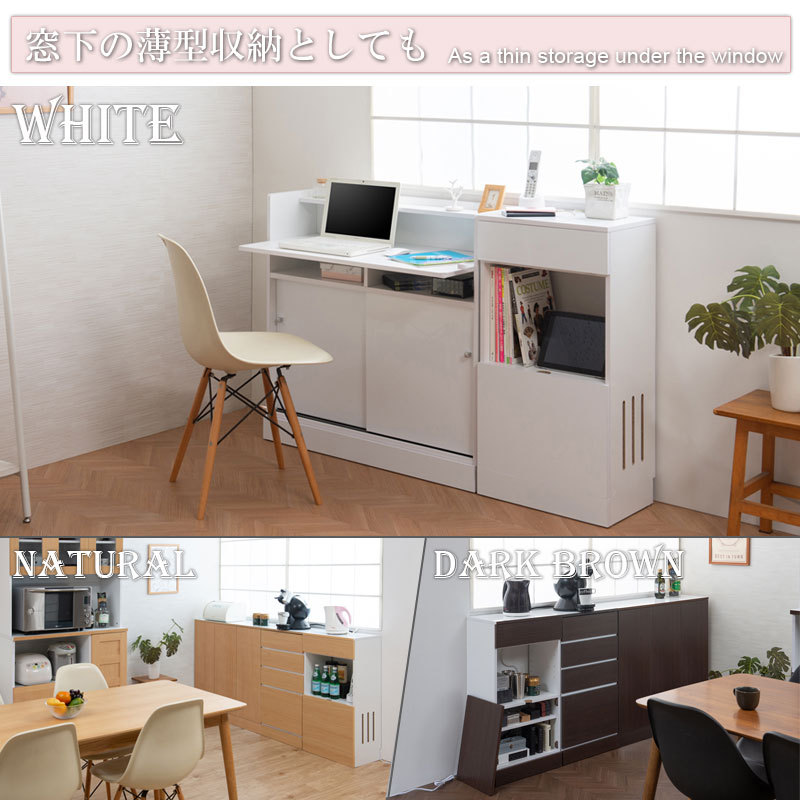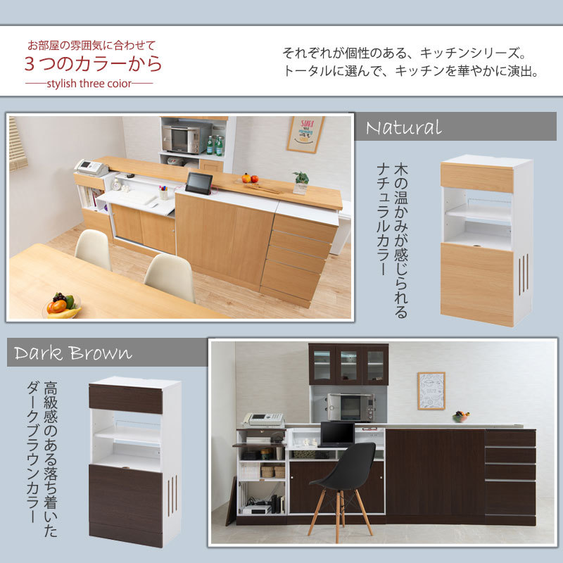 ■商品の仕様/天板:ハイグロス化粧繊維板、前板:(ホワイト)ハイグロス化粧繊維板、(ナチュラル・ブラウン)強化プリント紙化粧繊維板、その他:プリント紙化粧繊維板(傷に強い樹脂コート加工)