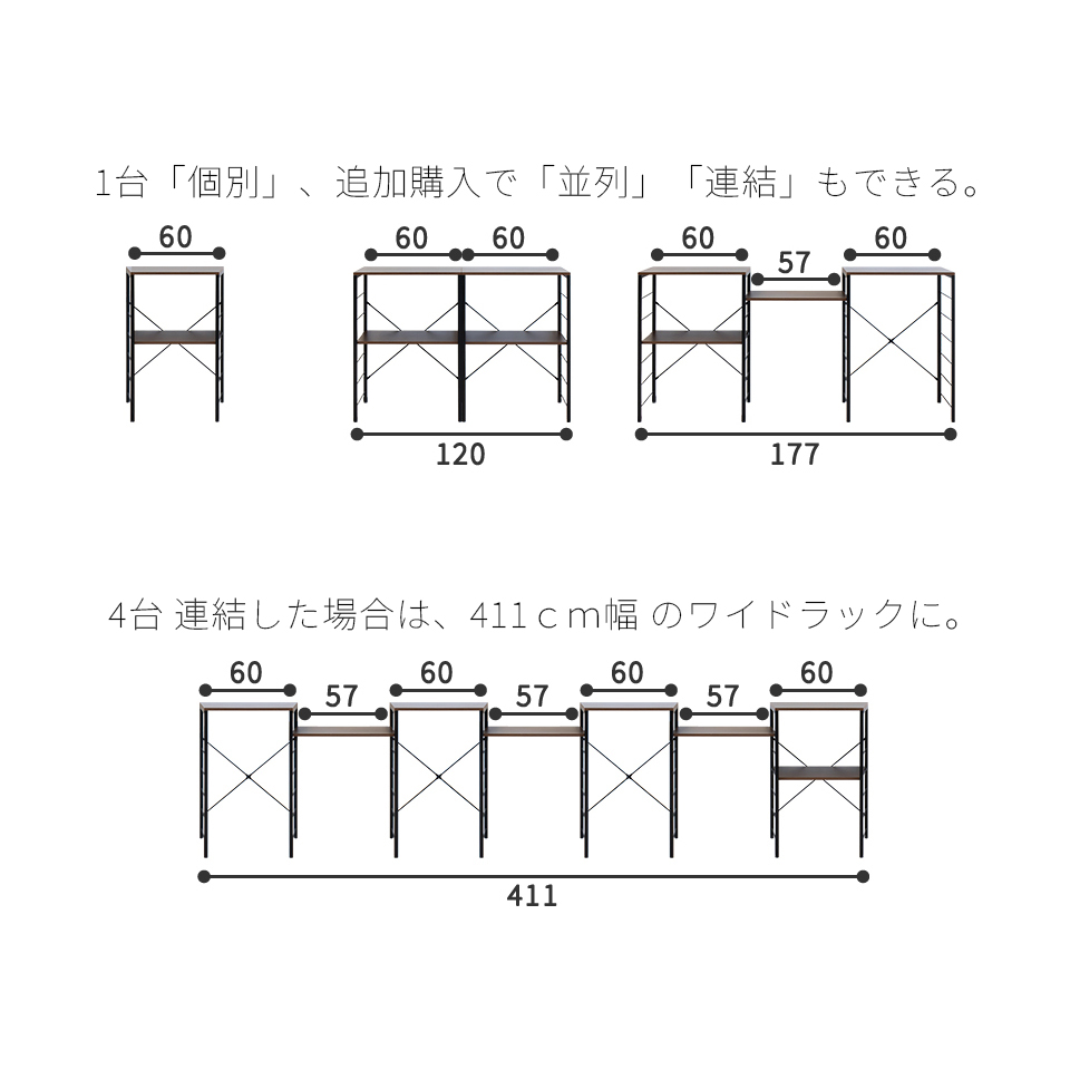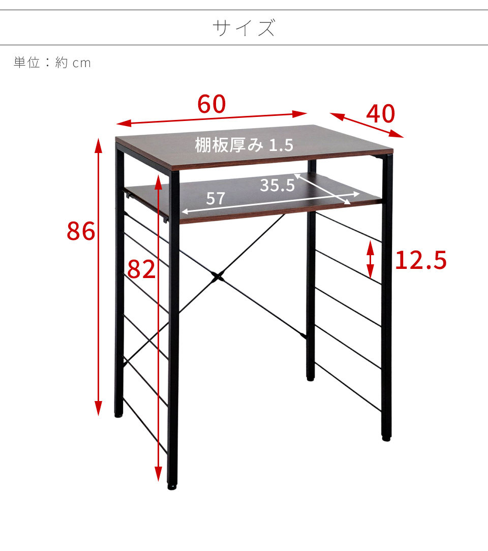 | 1台:幅60cm×奥行40cm×高さ86cm | 材質:スチール粉体塗装仕上げ/化粧繊維板(メラミンシート貼り) 原産国:中国 | ||