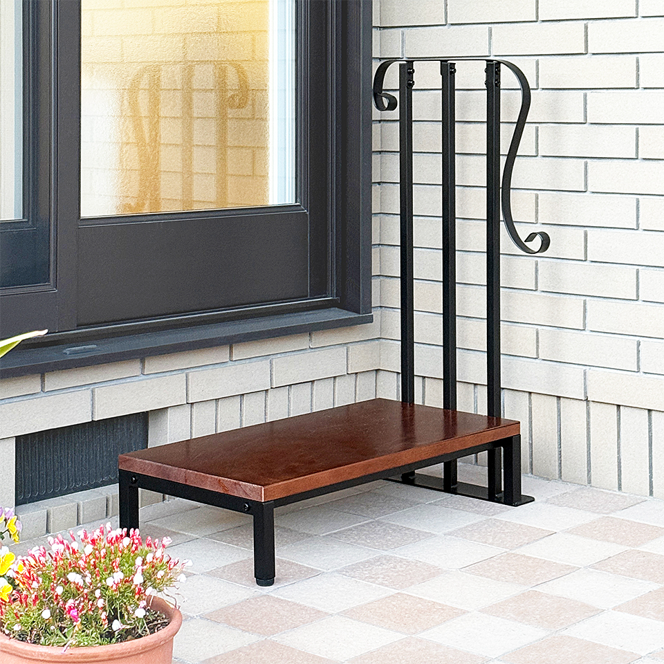キーワード:手すり付きアイアンステップ 1段 段差解消 玄関 土間 デッキ 段差 1段ステップ 木製 天然木 エクステリア 右 左 敬老の日 ウッドデッキ 縁台 掃き出し窓 おしゃれ リフォーム アジャスター付き 左右取付 玄関台 転倒防止 勝手口 高齢者 実家 プレゼント 物干し ガーデニング 庭 ケガ防止 パウダーコーティング 室内 腰掛け エントランス 玄関 ベランダ エクステリア 踏み台 土間上がり ステップ 段差解消 庭 玄関 ベランダ 天然木 介護 歩行支援 玄関台 ステップ ステップ台 通販サンゴ
