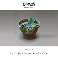 | 信楽焼のめだか鉢。めだかや金魚の他にもスイレンや蓮、アサザ、ヨシなどを育てて頂くと、お庭や玄関先に涼しげで粋な癒し空間を作り出してくれる商品です。 |