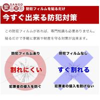 ●窓ガラスに貼ることでガラスを割れにくくし、泥棒などの侵入を遅らせます。
