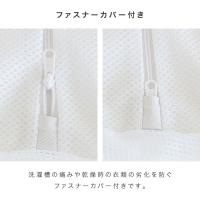 | 布団も洗える 超大判ランドリーネット Wメッシュ 筒型 60cm×48cm 布団もラクラク入る大判サイズ 広口ファスナーで出し入れ簡単 布団や毛布、こたつ布団、敷きパッドなど大物を洗うのにとても便利です。 いつも清潔・クリーニング代を節約 家族みんなで気持ち良くなれて、お財布にもやさしい。 お洗濯のめやす ●掛け布団シングル:1枚 ●こたつ掛け:1枚 ●毛布シングル:1〜2枚(厚手は1枚) ●敷きパッドシングル:2枚・タオルケットシングル:2枚 ファスナーカバー付き 洗濯槽の痛みや乾燥時の衣類の劣化を防ぐファスナーカバー付きです。 ダブルメッシュ仕様 生地を傷めないよう内側は細かい網目で外側は洗濯物に付着したゴミを逃がす荒い網目のダブルメッシュ仕様です。 ■使用上のご注意 ●洗濯量の目安は洗濯物の大きさや材質により変わります。※洗濯機の取扱説明書もご確認ください。 ●ネット容量の2/3程度を目安にお使いください。容量が少ない場合や詰め込み過ぎは破損の恐れがあります。 ●使い始めは素材特有のにおいがする場合があります。健康上の問題はございませんが、気になる場合は予め洗ってからご使用ください。 ●用途以外の使い方をされますと、破損や故障の原因になりますのでお避け下さい。 ●ファスナーは最後までしっかり締めてご利用ください。 ●火のそばや高温になる場所には置かないでください。 ●廃棄の際は各地方自治体の廃棄区分に従ってください。 ●乾燥機でご利用頂いた場合、洗濯物の容量によっては完全に乾かない場合があります。 |