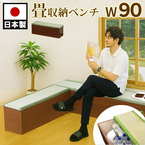 | (本体)約 W91xD30xH32.5cm (内寸)約 W87.5xD26x深さ28cm | 重量:約9.5kg 材質:プリント紙化粧繊維板、座部:い草、インシュレーションボード、ウレタンフォーム | ||
