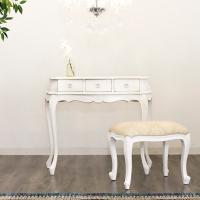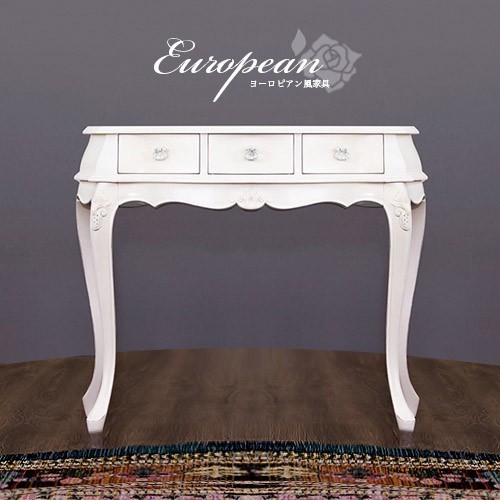 優美で洗練された曲線が印象的。中世ヨーロッパ調 猫脚デスク。木彫りが美しく白が華やかな天然木製のテーブル。