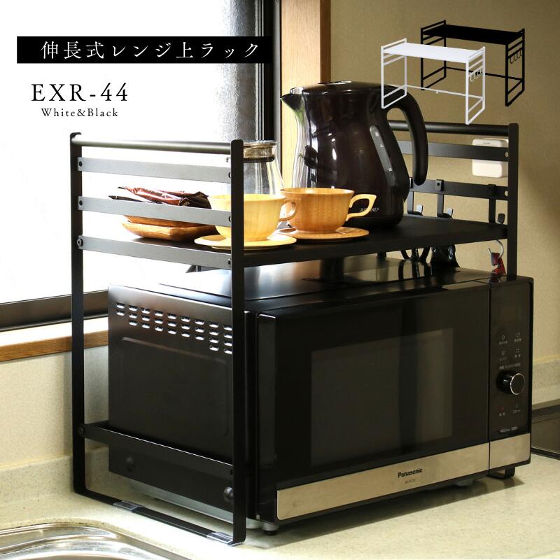 レンジラック 伸縮 幅43-71 レンジ台 2段 スリム 黒 おしゃれ キッチンラック スチール exr-44