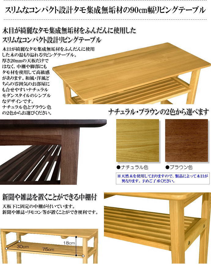 | 商品名 | スリムなコンパクト設計タモ集成無垢材の幅90cmハイタイプセンターテーブル | |