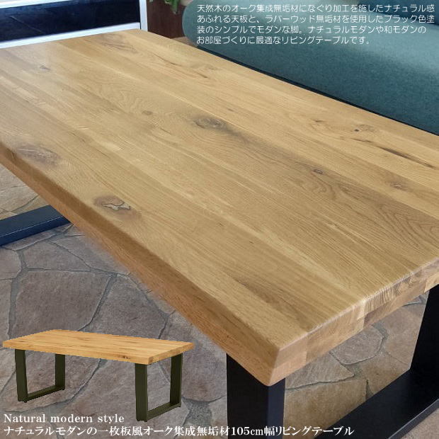 ナチュラルモダンの一枚板風オーク集成無垢材幅105cmセンターテーブル 応接用テーブル 天然木 木製 和風 和モダン 2人〜4人用 シンプル