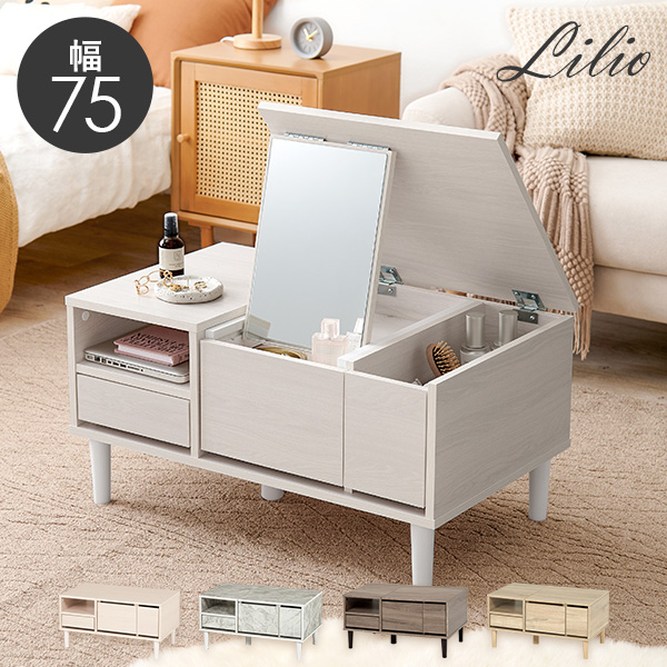 ドレッサー テーブル ドレッサーテーブル 白 おしゃれ 収納 大容量 コンパクト 75cm 子供 ローテーブル デスク 机 コスメテーブル テレワーク リリオ