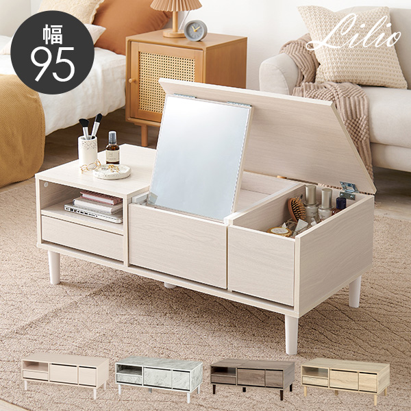 ドレッサー テーブル ドレッサーテーブル 白 おしゃれ 収納 大容量 コンパクト 95cm 子供 ローテーブル デスク 机 コスメテーブル テレワーク リリオ