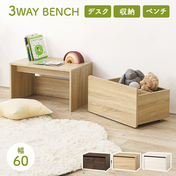ベンチ・収納・デスクとして使える3WAYベンチ