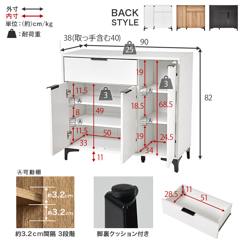 【商品サイズ(約)】幅90×奥行40×高さ82cm