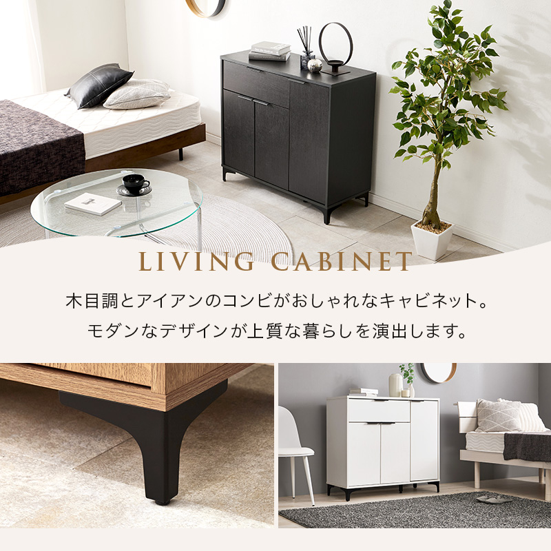 キャビネット 白 90cm 収納棚 扉付き おしゃれ 棚 ラック 収納 大容量 北欧 アイアン リビングボード 本棚 収納家具 ホワイト ノアン