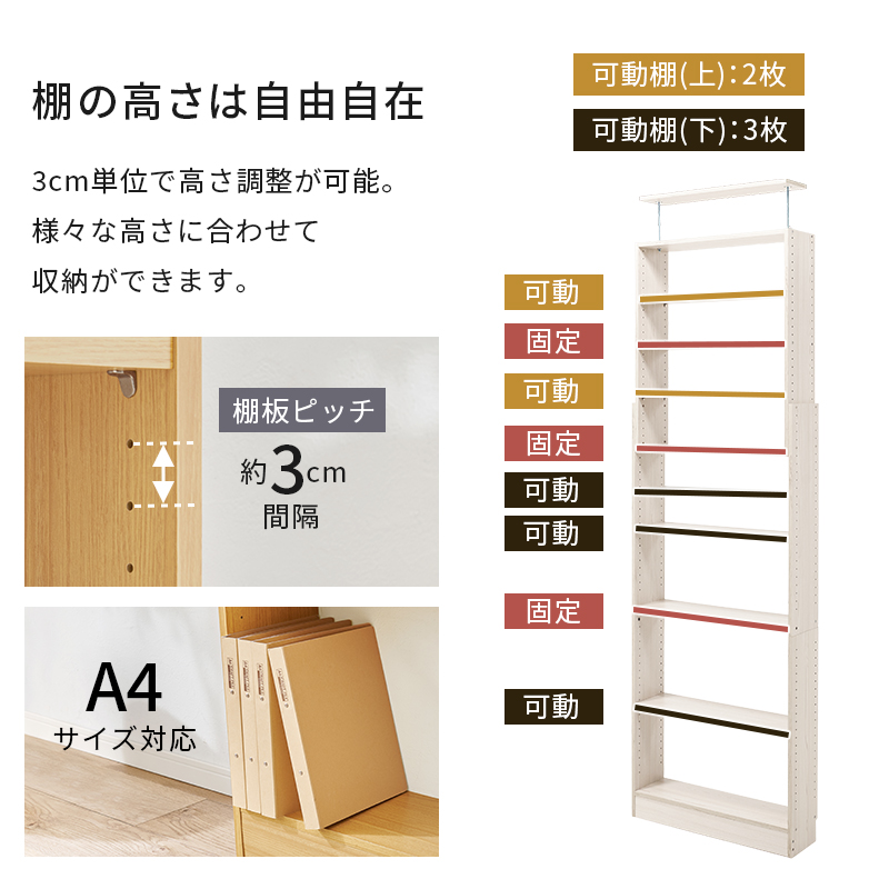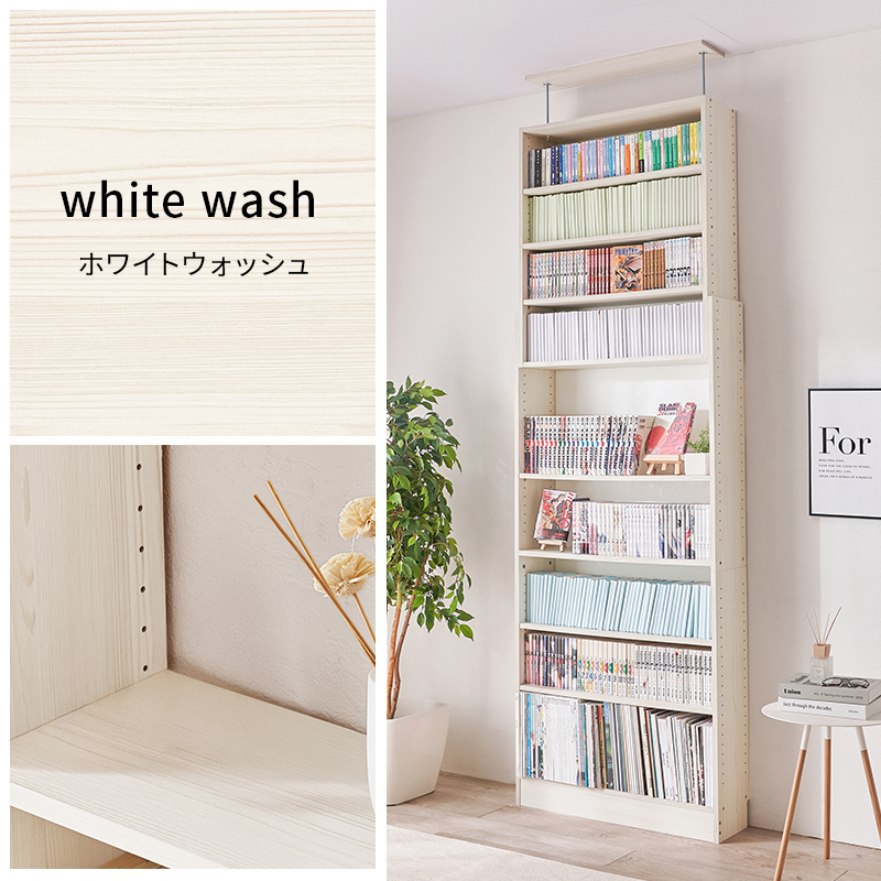 本棚 大容量 スリム 多機能 幅80 薄型 突っ張り棚 ラック 収納 オープンラック コミックラック おしゃれ 白 漫画 突っ張りラック ハリー