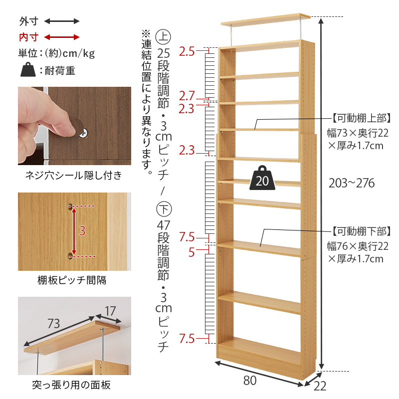 【商品サイズ(約)】幅80×奥行22×高さ203-276cm