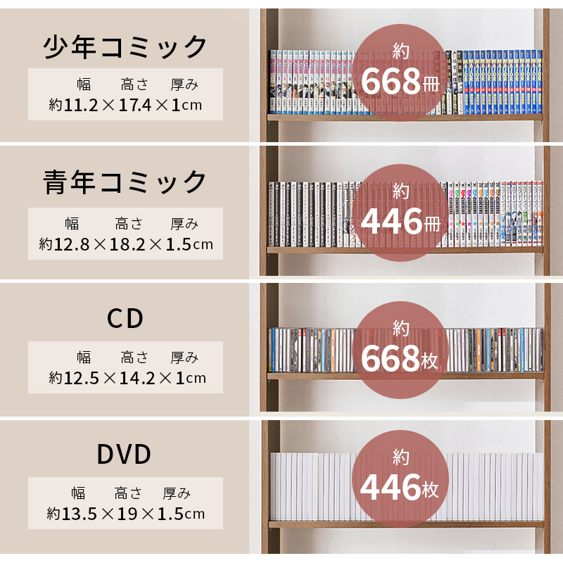 少年コミックが約668冊収納できる大容量収納本棚です。