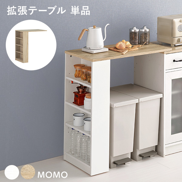 伸縮ラック キッチン キッチン収納 ラック キッチン収納棚 スリム 拡張テーブル 伸縮テーブル 伸縮 作業台 キッチン台 棚 食器棚 白 モモ専用拡張テーブル