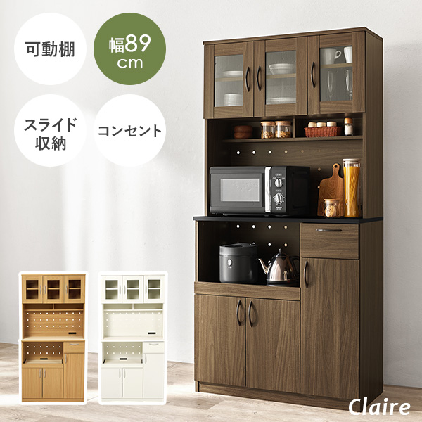 食器棚 スリム キッチンラック 一人暮らし キッチン収納 棚 ラック ガラス扉 引き出し 可動棚 大容量 扉付き キッチンボード ハイタイプ クレア