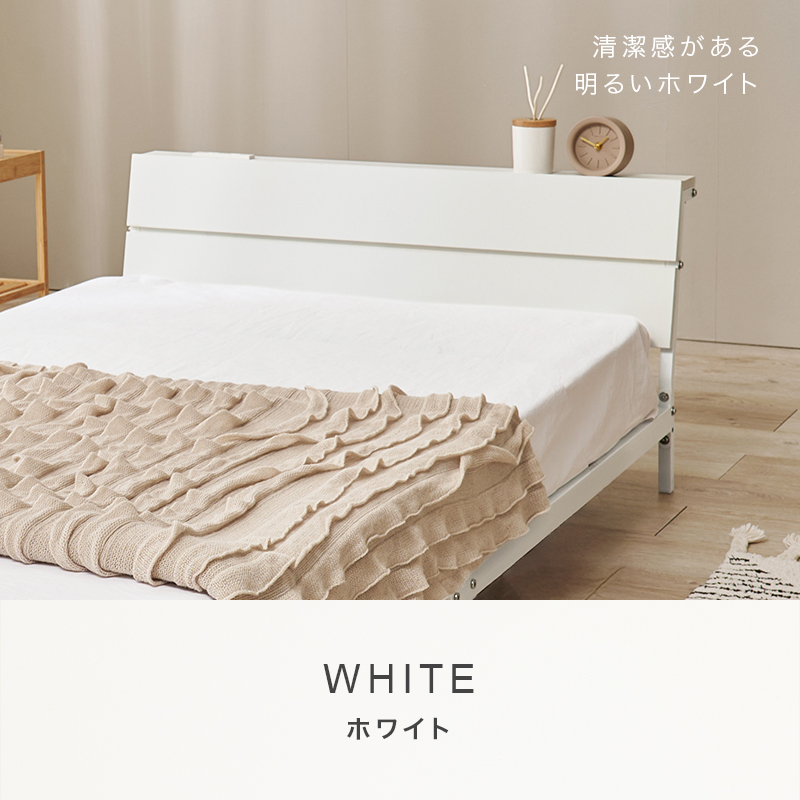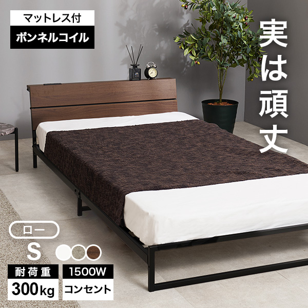 ベッド ベッドフレーム マットレス付き シングル 収納 パイプベッド シングルベッド 安い 宮付き コンセント付 ボンネルコイル 耐荷重300kg ロータイプ 頑丈