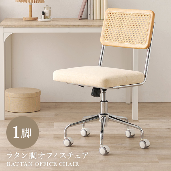 ラタン調の編み目が可愛いオフィスチェア。