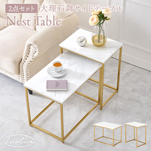 サイドテーブル テーブル 大理石 ネストテーブルホワイト おしゃれ ソファテーブル 家具 インテリア リビング ダイニング ゴールド脚 リコリコ