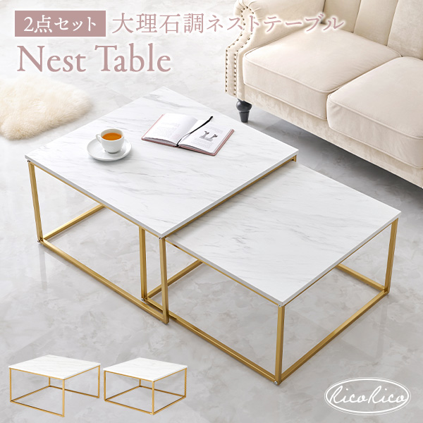 テーブル ネストテーブル 大理石 ネストテーブルホワイト おしゃれ ソファテーブル 家具 インテリア リビング ダイニング ゴールド脚 リコリコ