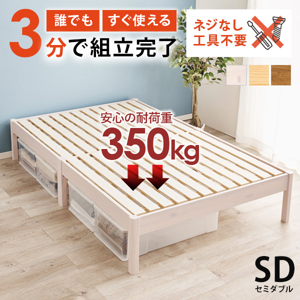 ベッド ベッドフレーム セミダブル 収納 すのこベッド セミダブルベッド すのこ 木製 白 おしゃれ 安い ベット 組み立て簡単 工具不要 耐荷重350kg ネジレス
