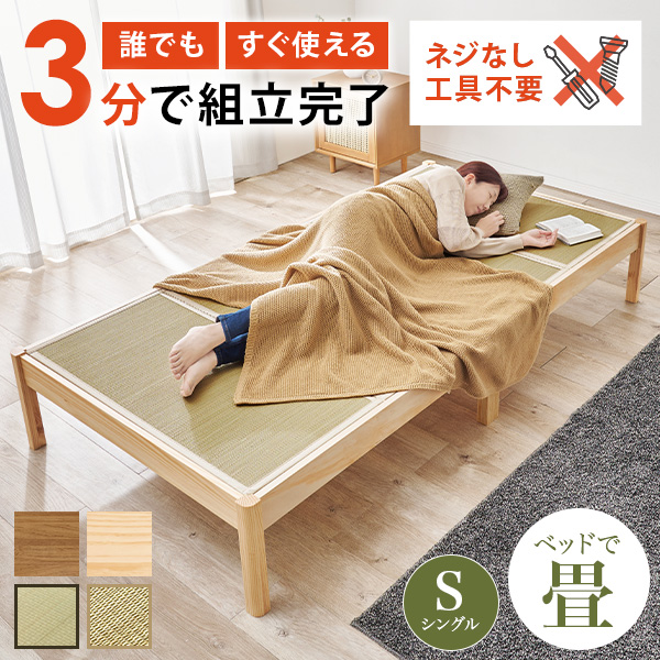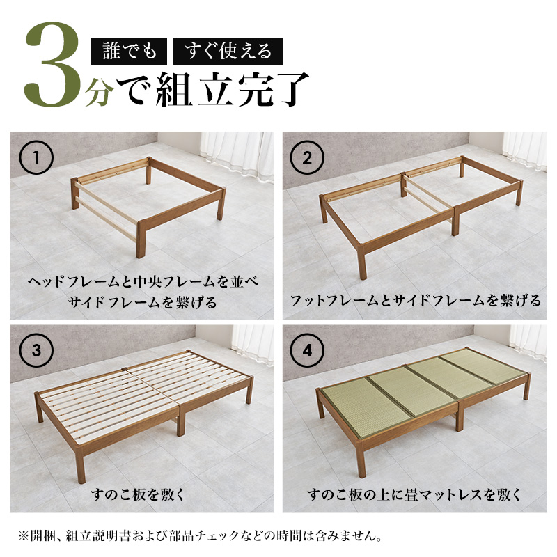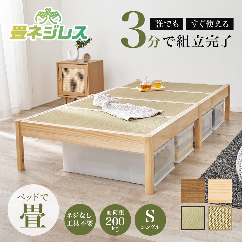 ベッド ベッドフレーム マットレス付き シングル 畳 収納 畳ベッド すのこベッド シングルベッド すのこ ベット 組み立て簡単 工具不要 ネジレス