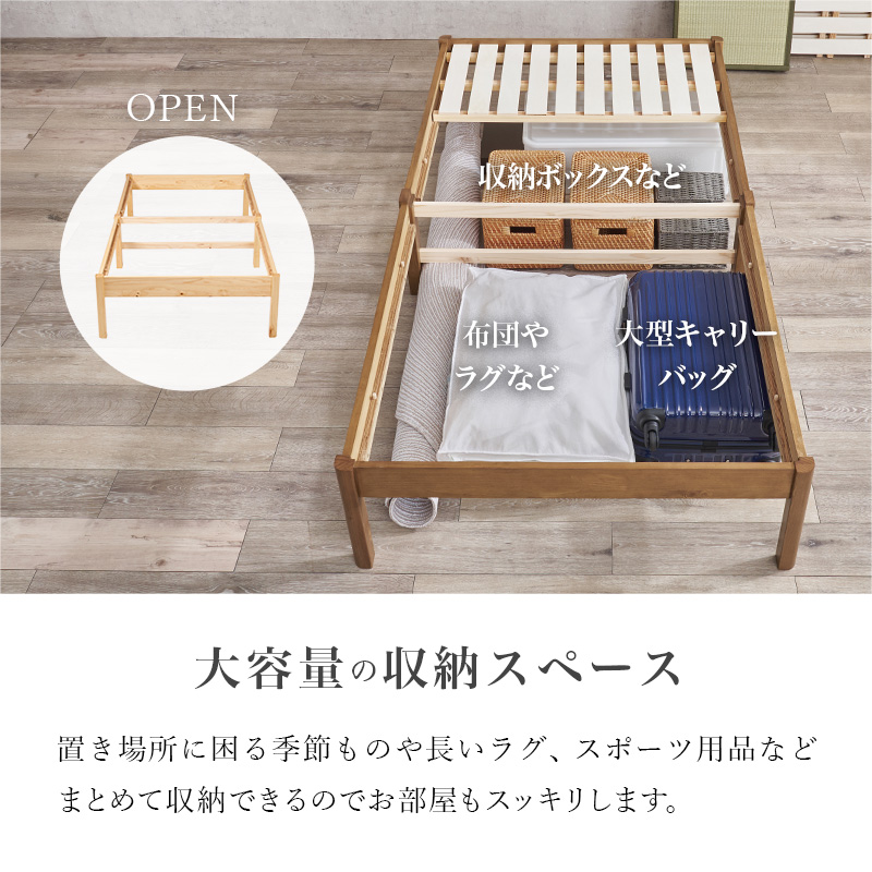 シンプルなデザインながらベッド下収納もできるスペースも確保。