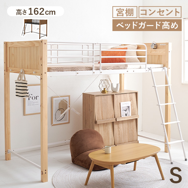 ロフトベッド ミドル 木製 子供 小さめ ハイタイプ ロフトベット パイプベッド シングル 宮付 ロフト コンセント 大人用 パイプ ベッド フレーム