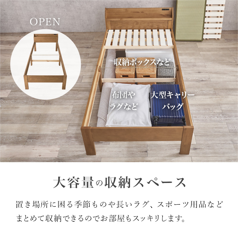 ベッド下は大容量の収納になるので、オフシーズンの洋服や家電、