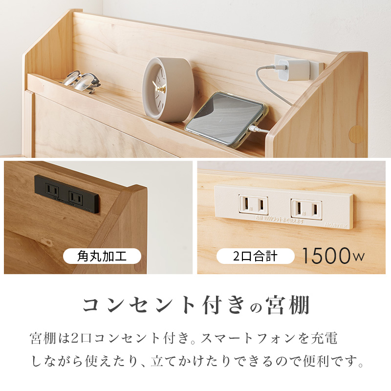 2口コンセントも付いているので充電もできて便利。