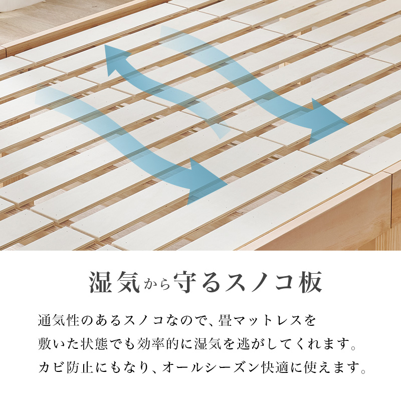 ベッド ベッドフレーム シングル すのこベッド 高さ調節 シングルベッド すのこ 木製 マットレス付き 宮付 コンセント付き 畳 耐荷重350kg