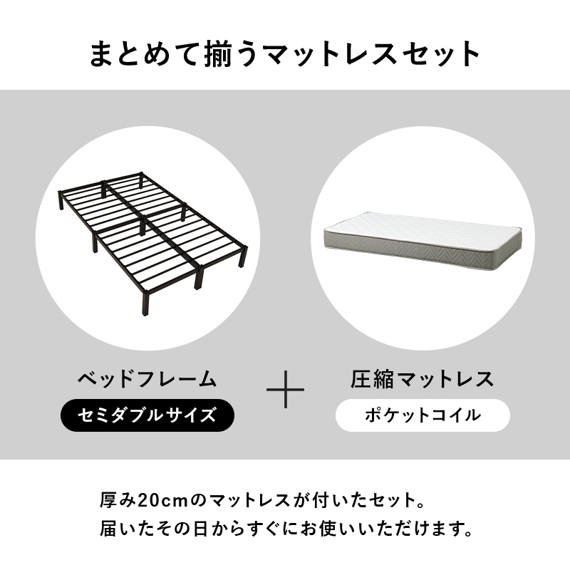 ベッド ベッドフレーム セミダブル パイプベッド セミダブルベッド おしゃれ 安い ベット スチール ホワイト 白 ブラック ポケット セット 黒