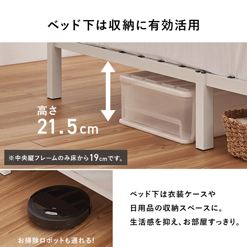 ベッド下の収納スペースも広く、さらに便利に活用。