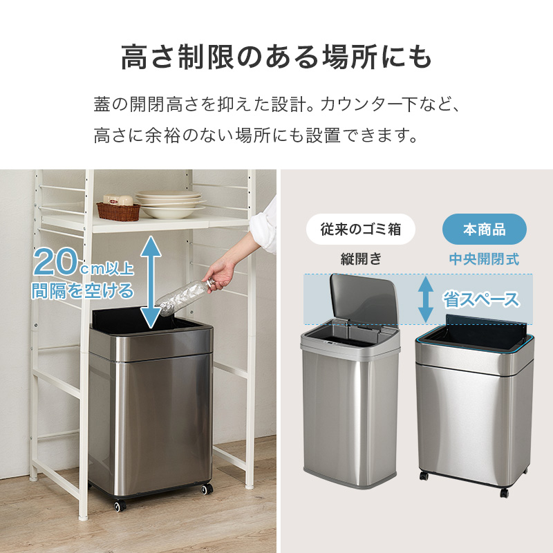 ゴミ箱 自動開閉 45L キャスター付き 45リットル スリム おしゃれ 自動開閉式 ごみ箱 蓋つき ふた付き ダストボックス ステンレス オゾン 機能 除菌 横開き