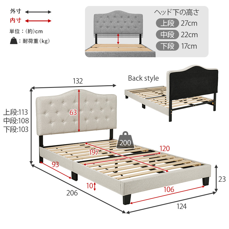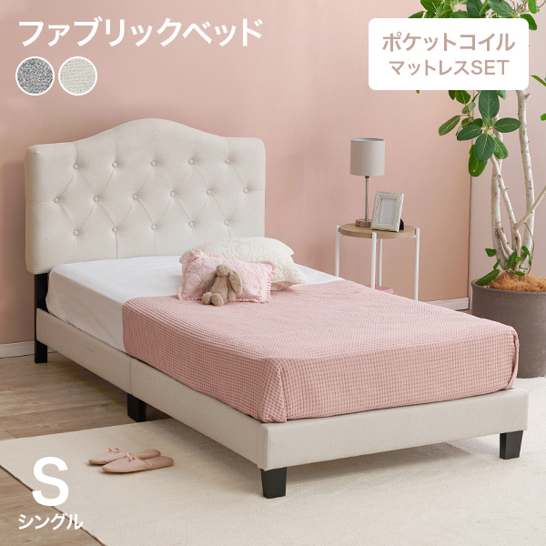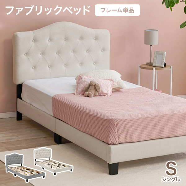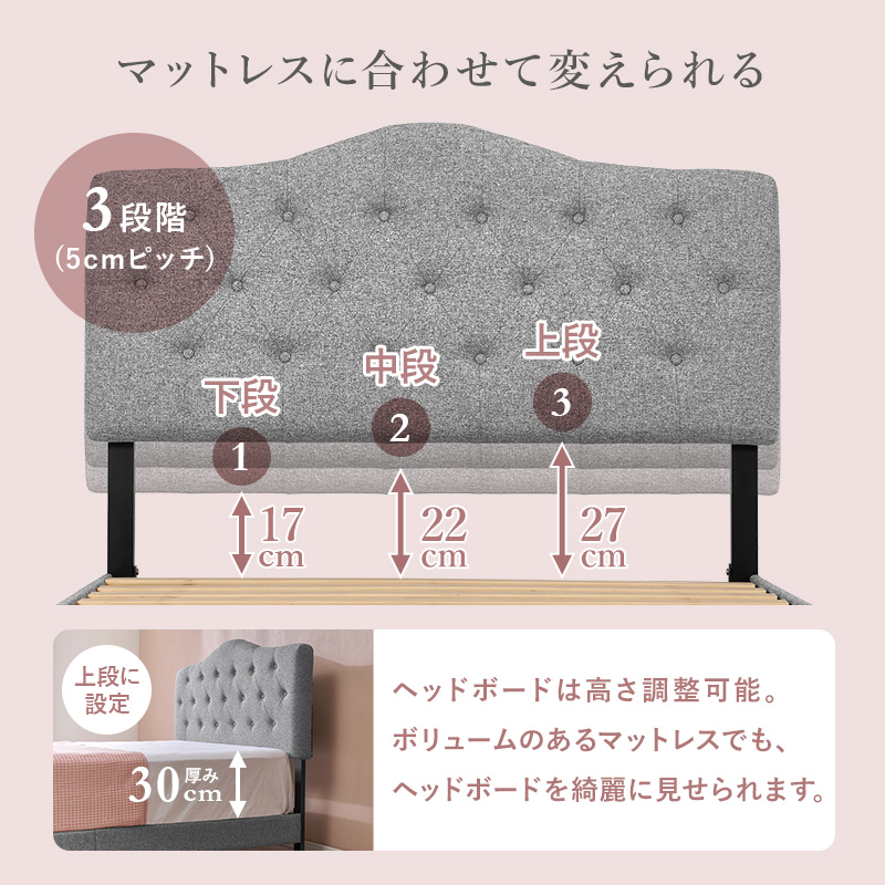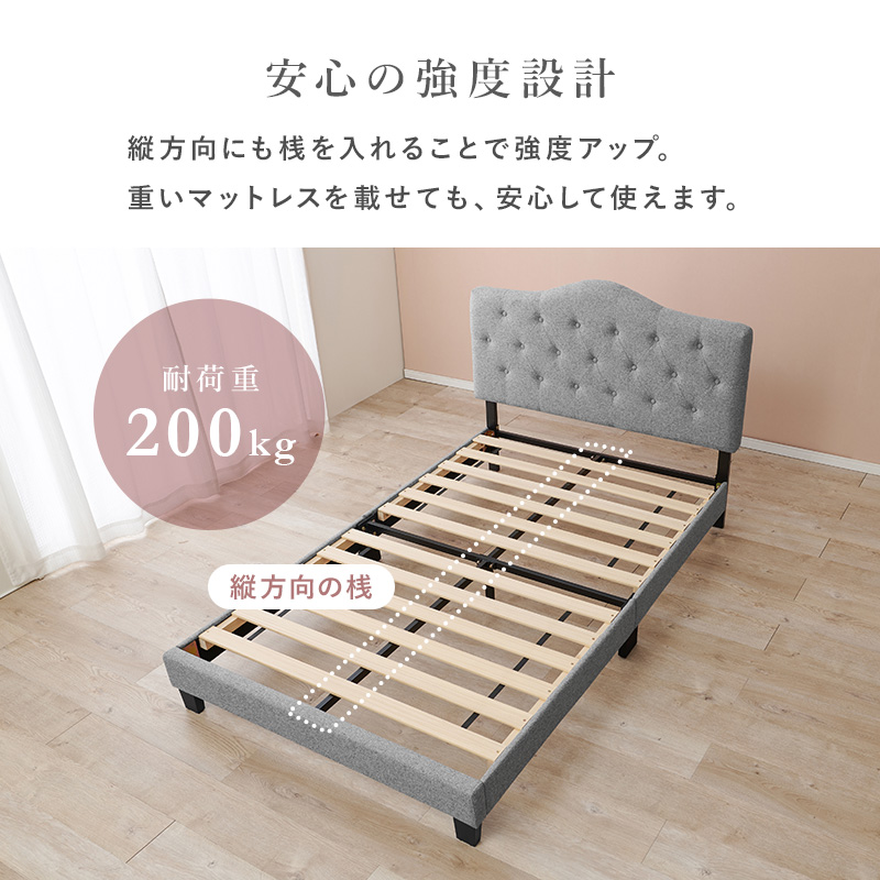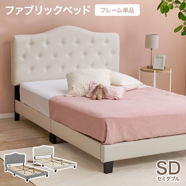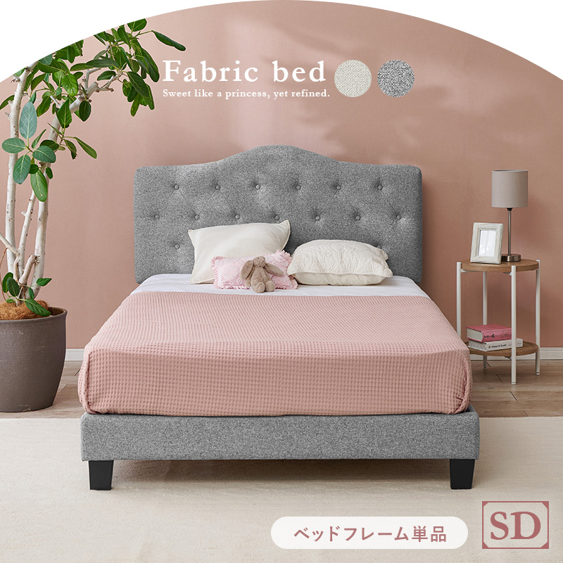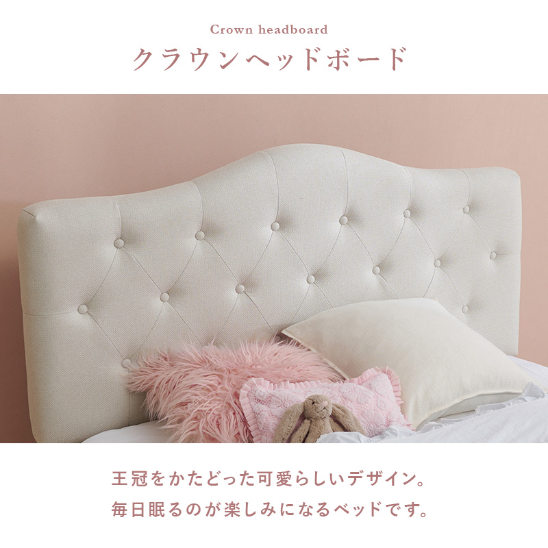 ファブリック ベッド ベッドフレーム セミダブル すのこベッド 布張り 背もたれ付き クラウンヘッド 姫系 かわいい ホテルライク アイボリー ライトグレー