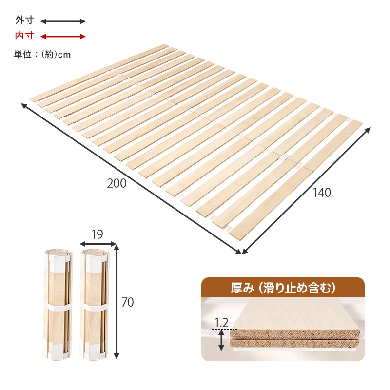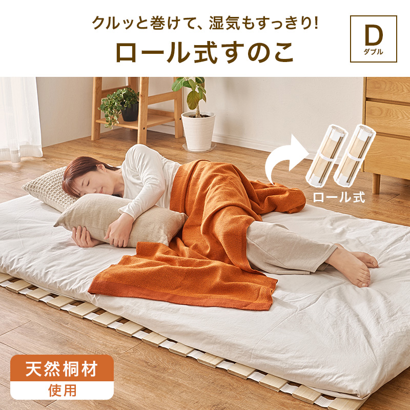 ベッド 収納 ダブル ロール式 すのこ ベッドフレーム ベット ダブルベッド コンパクト収納 通気性 湿気対策 木製 折りたたみ 桐 天然木