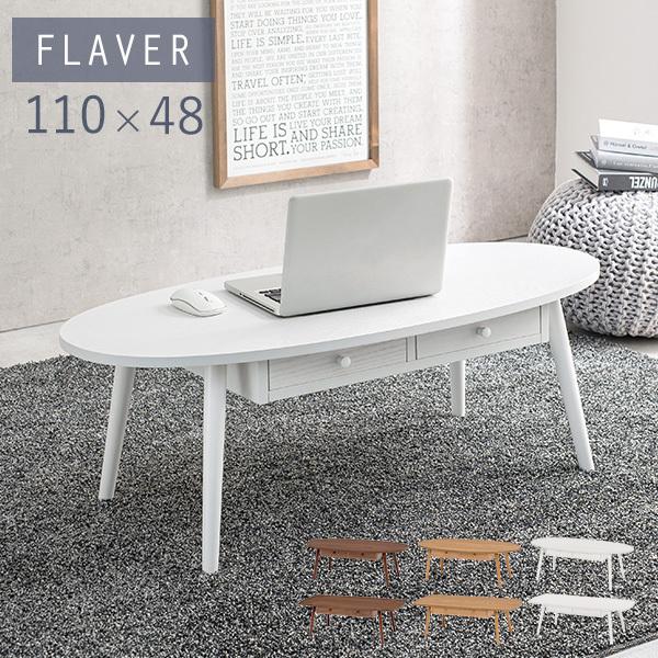 引き出し付きテーブル 幅110cm センターテーブル ローテーブル おしゃれ 北欧 収納 ブラウン ナチュラル ホワイト 楕円形 長方形 FLAVER フレヴァー