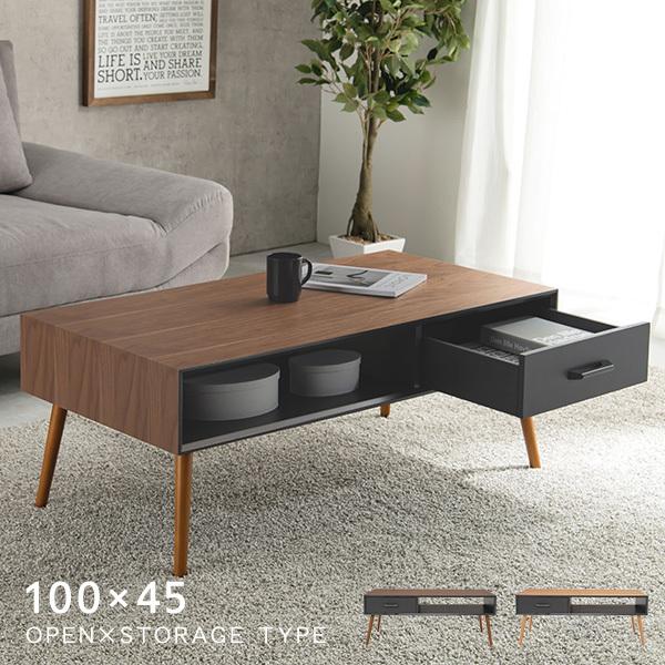 テーブル おしゃれ 北欧 ローテーブル 収納付き センターテーブル 引き出し 1杯 100 収納付きテーブル 机 収納 リビングテーブル 一人暮らし モード