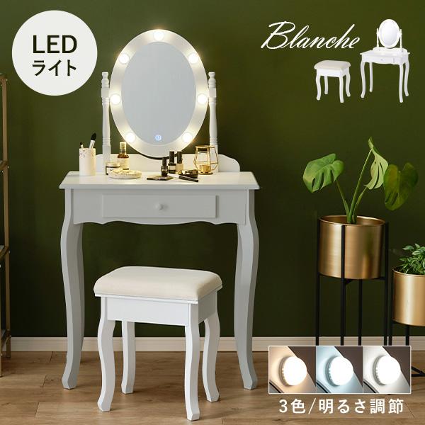 女優ミラー ドレッサー LEDライト 女優ミラー付きドレッサー 女優ライト ライト付き 調光 収納 引出し 椅子 セット 可愛い おしゃれ ブランシュ
