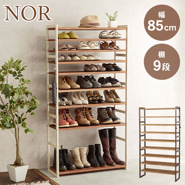 シューズラック スリム シューズボックス 下駄箱 靴箱 おしゃれ 北欧 木製 9段 薄型 収納 大容量 安い diy 狭い玄関 省スペース 玄関収納 スリッパ 幅85cm ノア