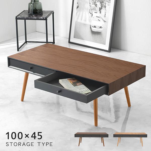 テーブル おしゃれ 北欧 ローテーブル 収納付き センターテーブル 引き出し 2杯 100 収納付きテーブル 机 収納 リビングテーブル 一人暮らし モード